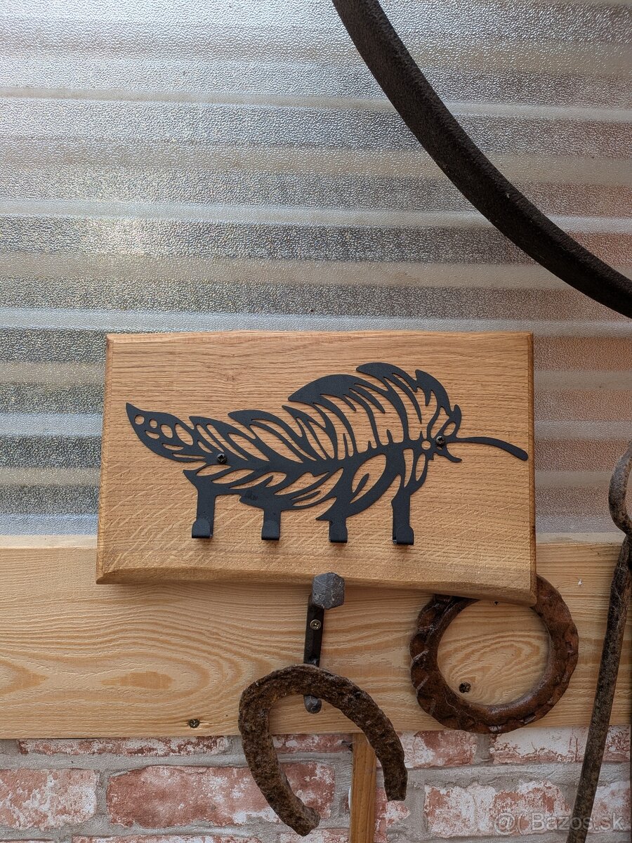 Predám vešiak z dubového dreva. Vešiačik vyrobený z dubového dreva a plechu . Strom mal viac ako 100 rokov , sadil ho manželkin dedko, bohužiaľ bol už chorý tak sme ho museli zrezať , hrozilo zrútenie na rodinný dom. Bolo mi ľúto všetko spáliť v kotly, tak som vyrobil dosky na krájanie, aspoň takto bude ešte niekomu slúžiť. Kazy a trhliny sú zaliate epoxidom. Drevo ošetrené olejom s voskom značky Osmo - bezpečný pri styku s potravinami. Veľkosť 30x18x2,8cm.