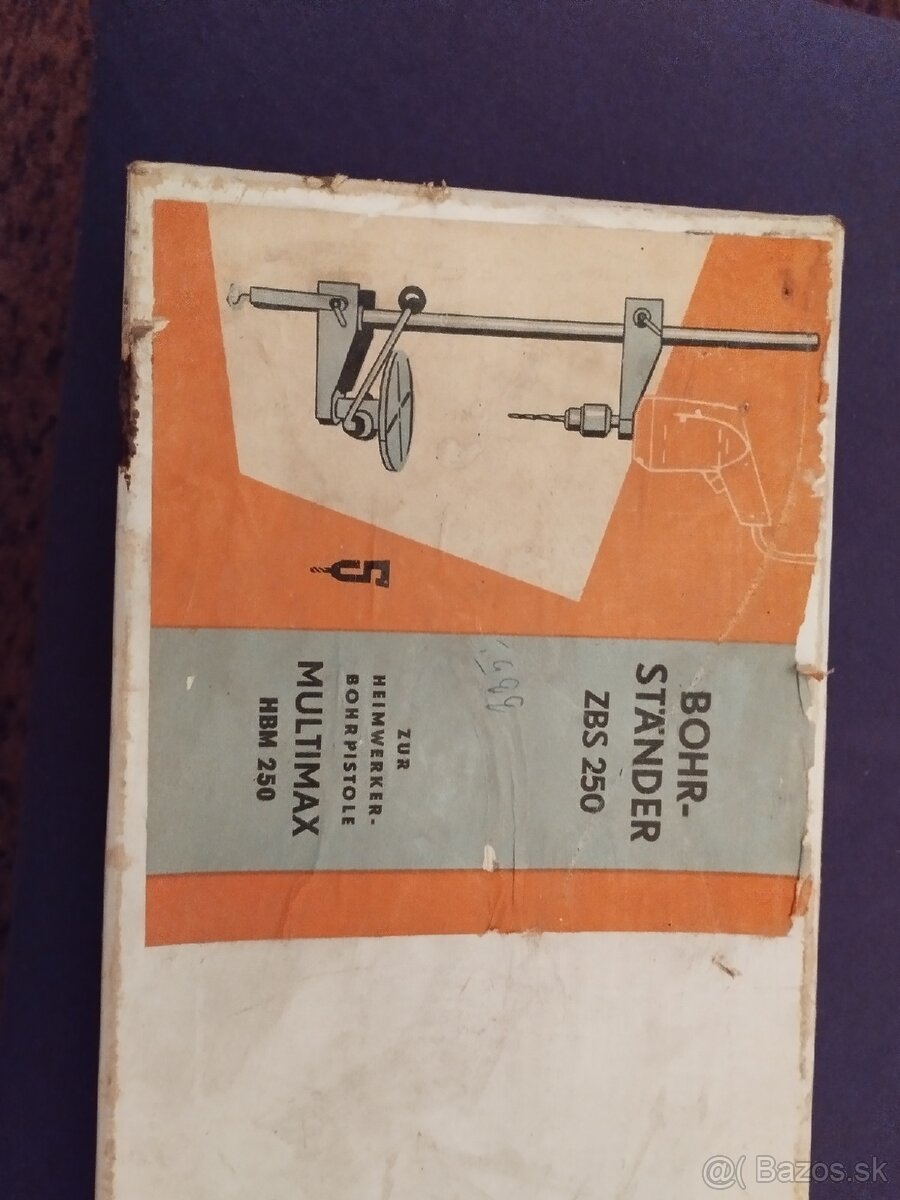 Predám starý stojan na vŕtačku zn Bohrstander zbs 250 tip 51-1.Ide skôr o zberateľský kúsok.Stojan nebol nikdy použitý v originálnom obale + návod, záručný list a baliaci list.Seriozne ponuky poprosím na mail, číslo je vymyslené.Preferujem osobný odber.