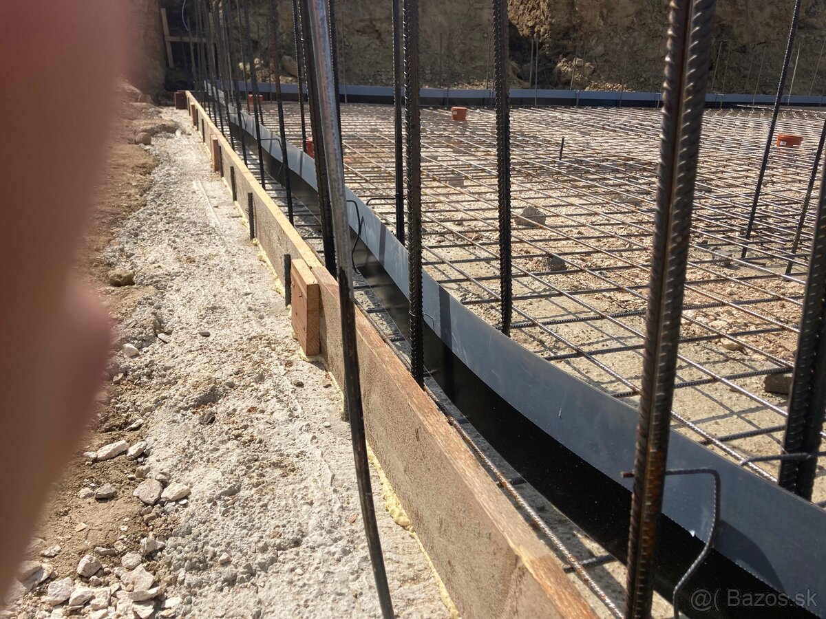 Tesniaci plech sa pouziva v minolitickom betone, sirka 160mm - polovica sa betonuje do deky, druha polovica do stien/murov preto je na nom predelena ochranna folia na polovicu