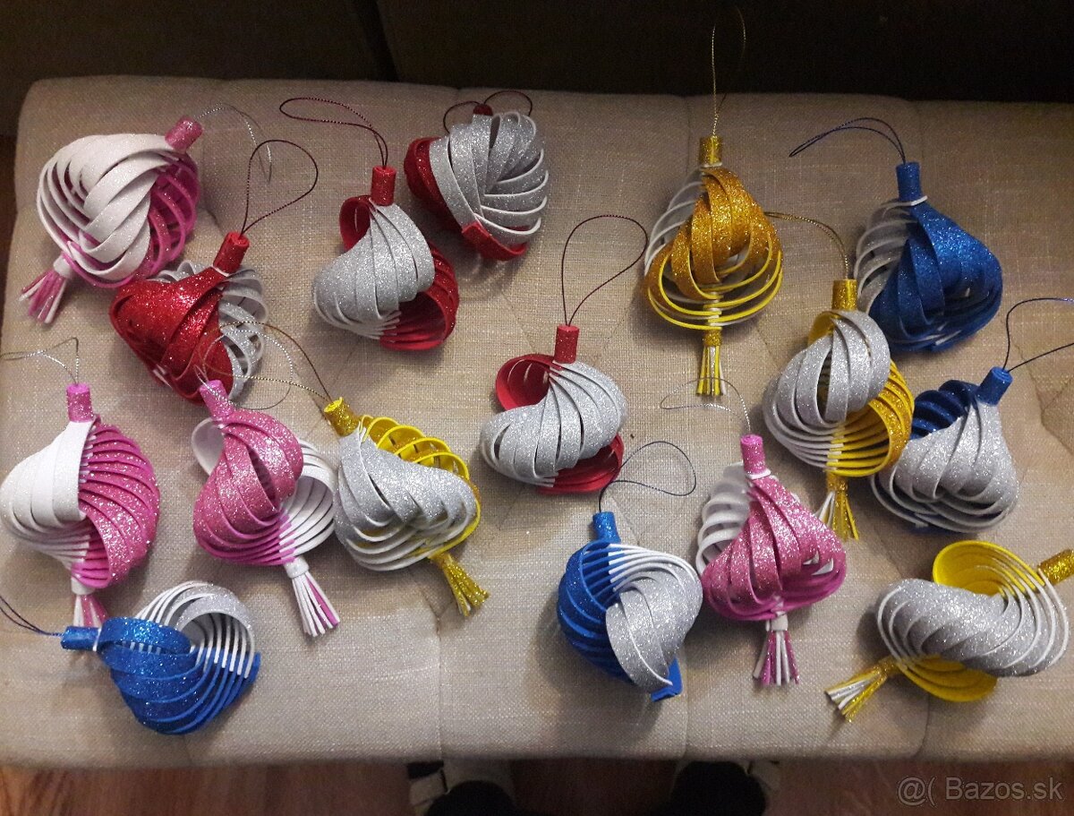 Pripravte sa už teraz na Vianoce. Ponúkam krásne vianočné ozdoby vo farbach a vzoroch ako na obrázkoch. Cena 2.50 eur. Pri odbere nad 10 ks cena 2 eura. Možný aj osobný odber v SB alebo v PO. Pri zasielaní poštou je potrebné prirátať aj cenu za poštovné.