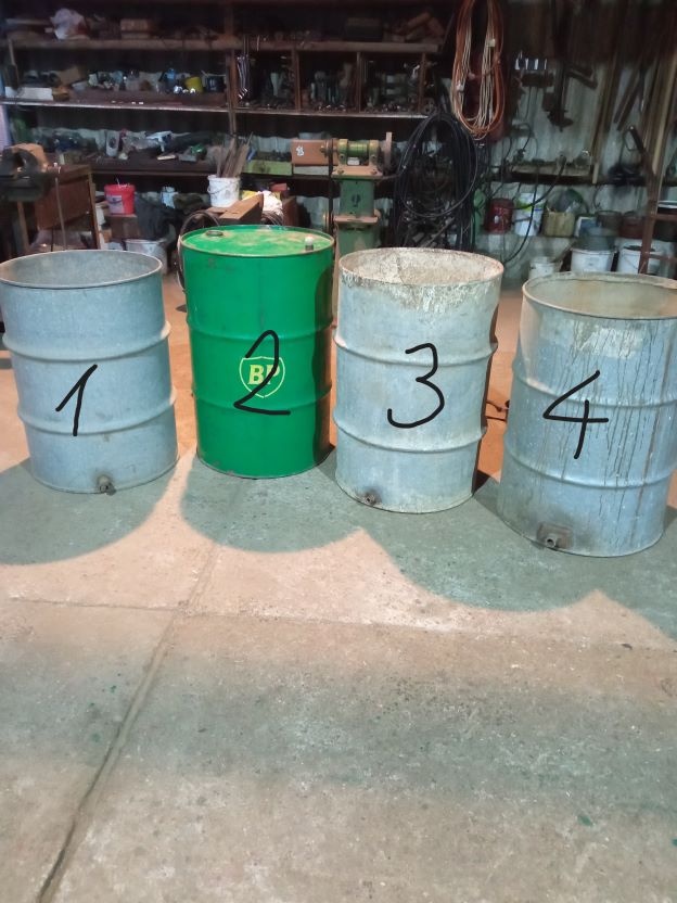 Predám plechové sudy 200l. Zelený sud je od nafty, v ostatných bola voda a obilie. Cena za 1 ks/20€.