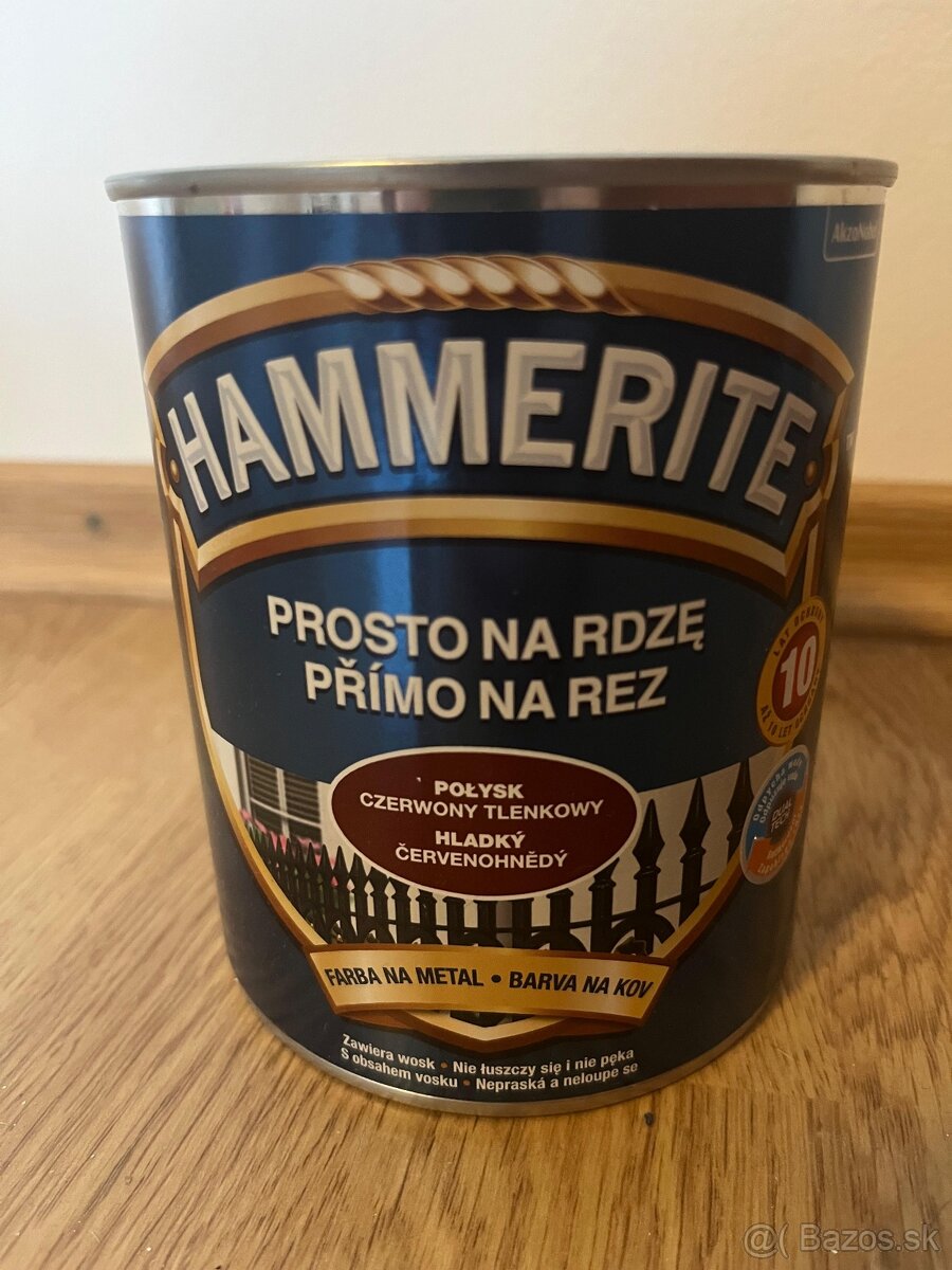 Predám farbu na kov Hammerite 0.7l, červenohnedá, hladká.