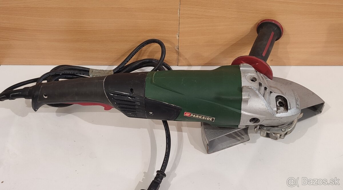 Na predaj je výkonná uhlová brúska značky Parkside, model PPWS 230 A1, vhodná na rezanie a brúsenie rôznych materiálov vrátane kovu, dlaždíc a muriva.