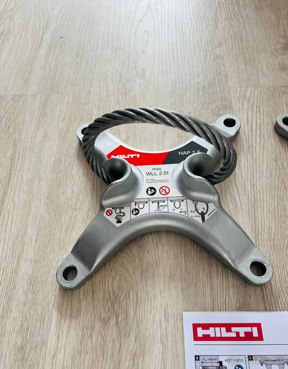 Ponúkam na predaj výtaharský hak -Kotviaci bod HILTI HAP 2.5t + 4x Kotva do betónu M12 a návod na použitie , všetko je nove originál zabalené cena 60€/ks viem poslat aj na dobierku