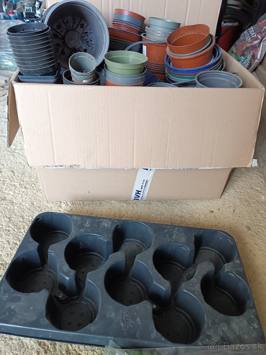Predám črepníky z terakoty, plastové a keramické: Rozmery črepníkov: fialový - 18 (výška) x 19 cm (priemer) - cena 8 eur, žltý - 10 (výška s podnosom) x 11 cm (priemer) - cena 5 eur, terakota mištička - 5 (výška) x 12 cm (priemer) - cena 2,5 eur, žlté kvetináče: najmenší - 7,5 (výška) x 7 cm (priemer), stredný - 9 (výška) x 9 cm (priemer), najväčší - 13 (výška) x 14 cm (priemer) - cena za všetky 12 eur, biele okrúhle plast - 22,5x15 cm, črepníky na orchideu, oválne črepníky, črepníky s mištičkami... Črepníky sú zánovné, niektoré vôbec nepoužívané, nepoškodené. Viac info v maily.