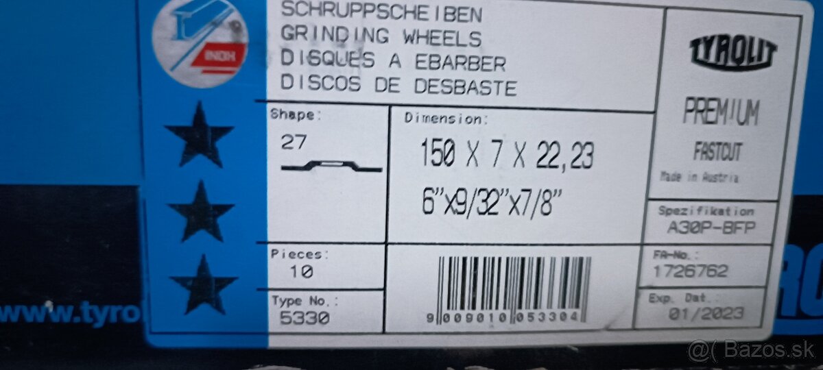 Predám brúsne a rezné kotúče Tyrolit 150 mm