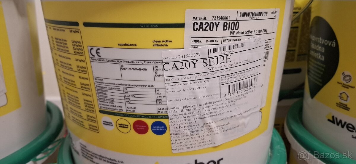 Ponukame vlajkovu lod od weberu, silikatova omietka s fotokatalyckym efektom a skvelou paropriepustnostou, odtien SE12E - moznost obhliadnut na mieste priamo na fasade, zamiesana v maji 2025, ostalo nam cca 5 vedier po 25kg - 2 vedra su nacate, sikovny majster natiahne 12m2 z vedra, cena za vedro