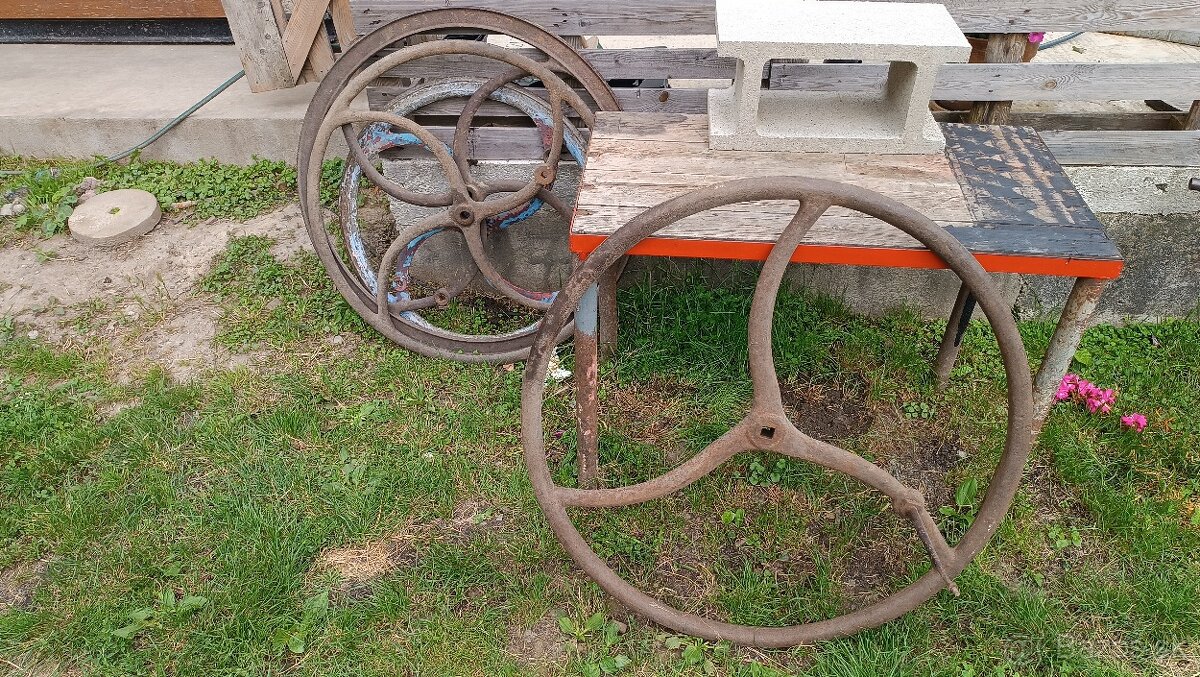Predám liatinové kolesa vhodné na studňu, dekoráciu. Rozmer od 80-98 cm. Modre predané. Kus 45€.