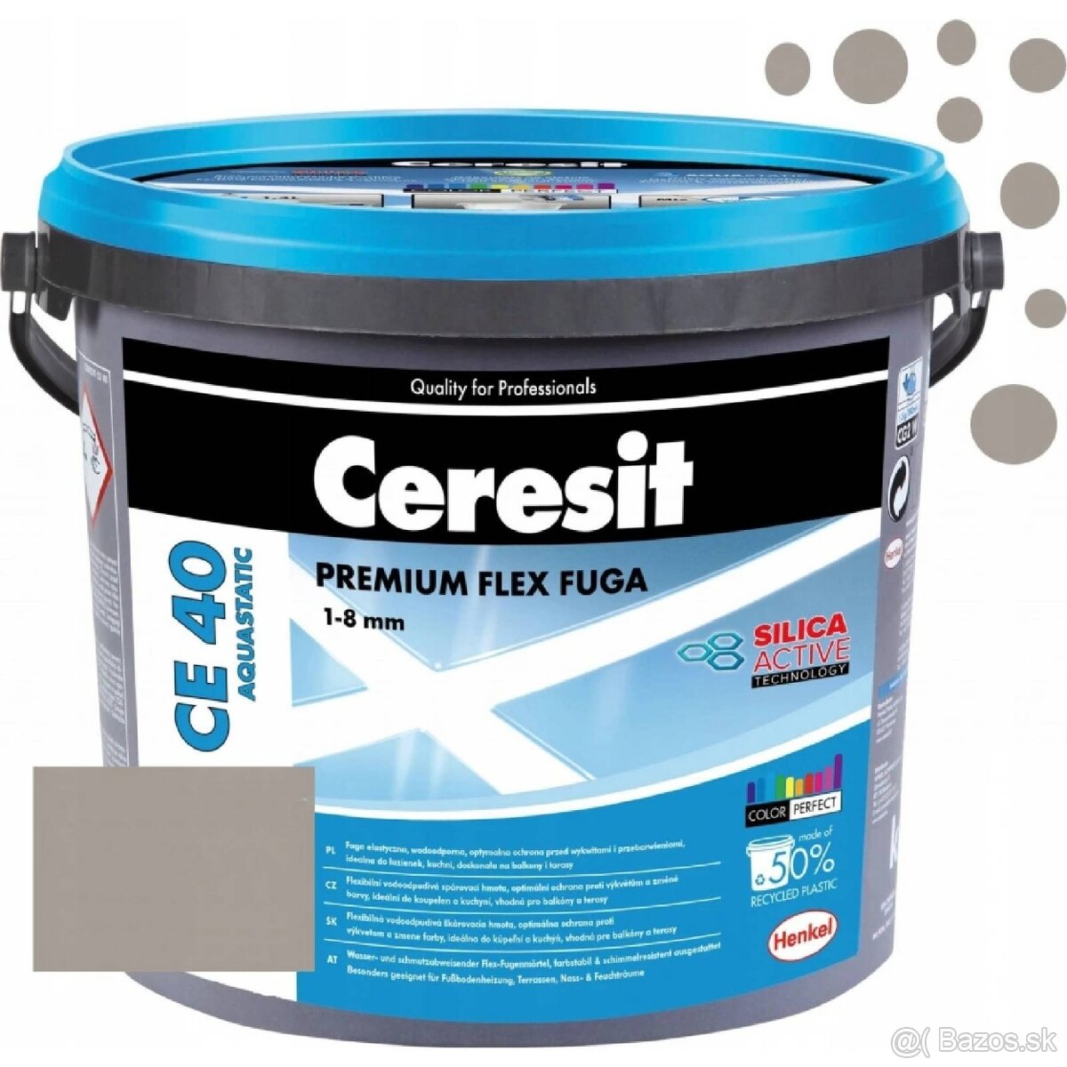 Flexibilná cementová škárovacia hmota na škárovanie obkladov a dlažieb z keramiky, skla a kameniny, na šírku škár do 8 mm.