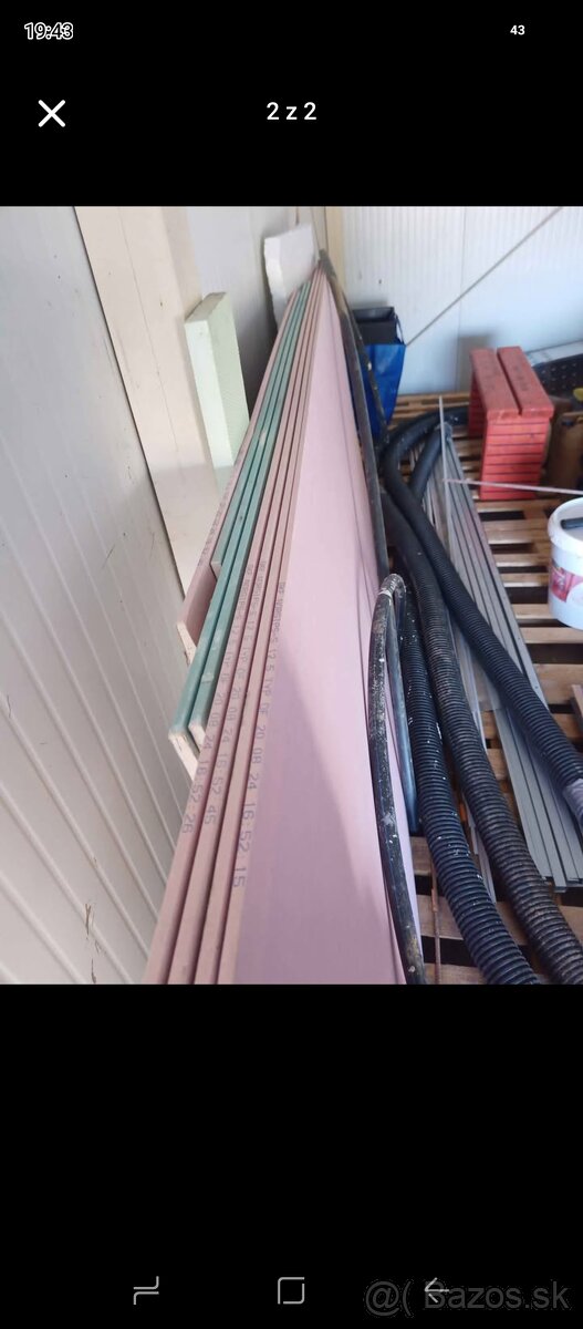 Dobrý deň predsm zostatok zo stavby ružový protipožiarny sadrokartón 1.3x2.8m plus predám hydroizoláčnú kupeľnovú pásku Ceresit CL