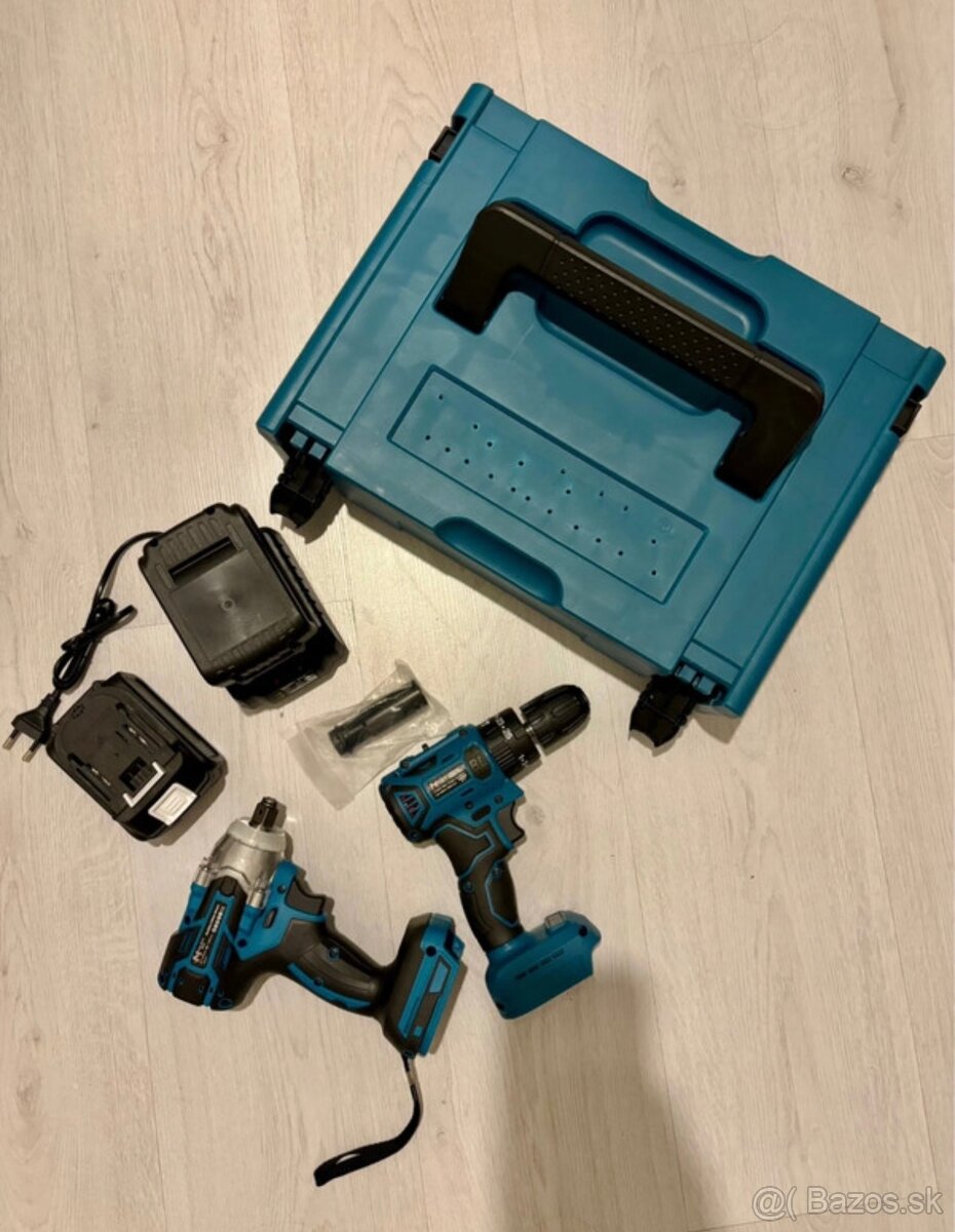 Predám aku sadu MAT-RIXX MAX, ktorá obsahuje rázový uťahovák (350 Nm), aku vŕtačku, 2x batériu, nabíjačku a kufrík.
