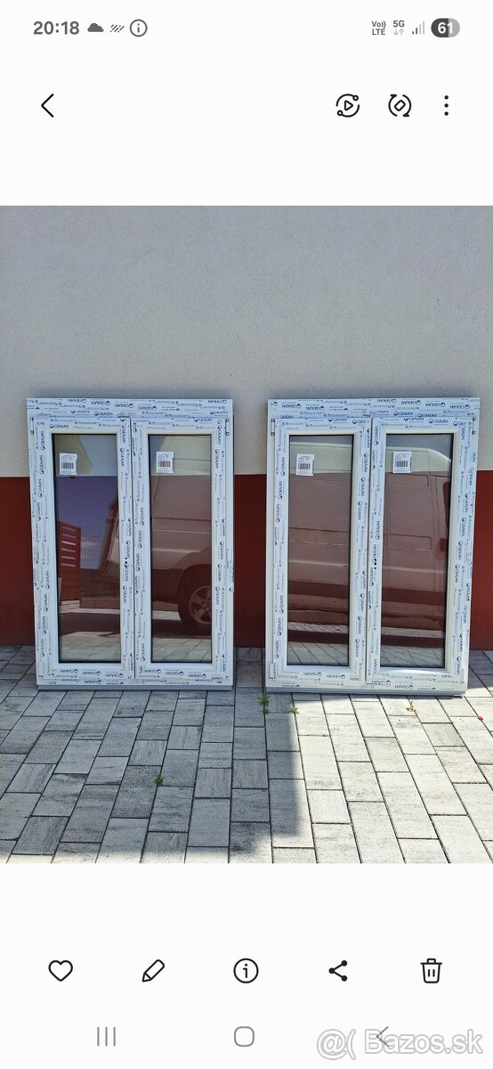 Predám nové plastové okná Gealan biele dvojsklo rozmer 1060 x 1460 2 ks