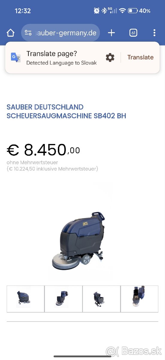 Predám úplne nový, nikdy nepoužitý profesionálny podlahový čistiaci stroj Sauber Deutschland SB402 BH. Ide o výkonný batériový stroj vhodný do hál, dielní, garáží alebo hotelov.