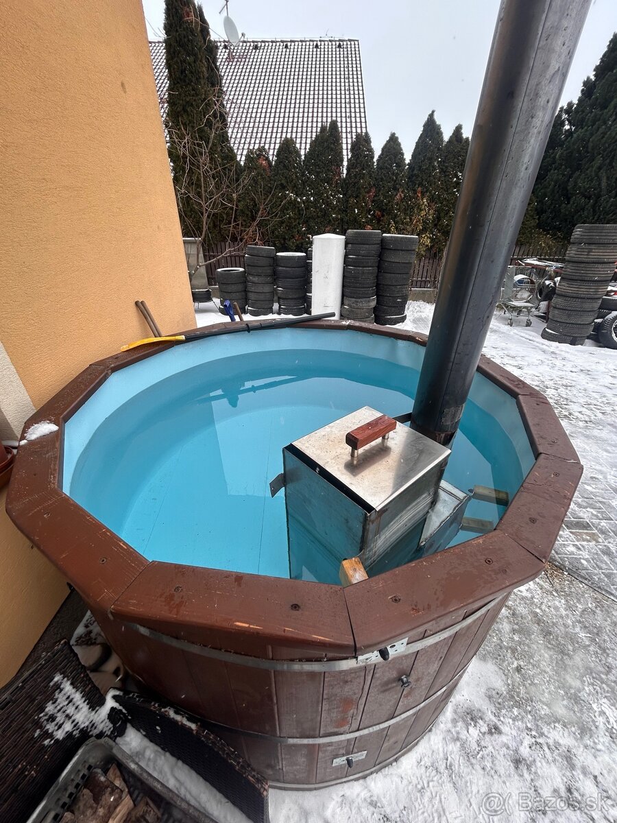 Kupacia kada drevenna z nerezovou pieckou vnútri natiahnutá bazenova fólia priemer 160cm možný aj dovoz