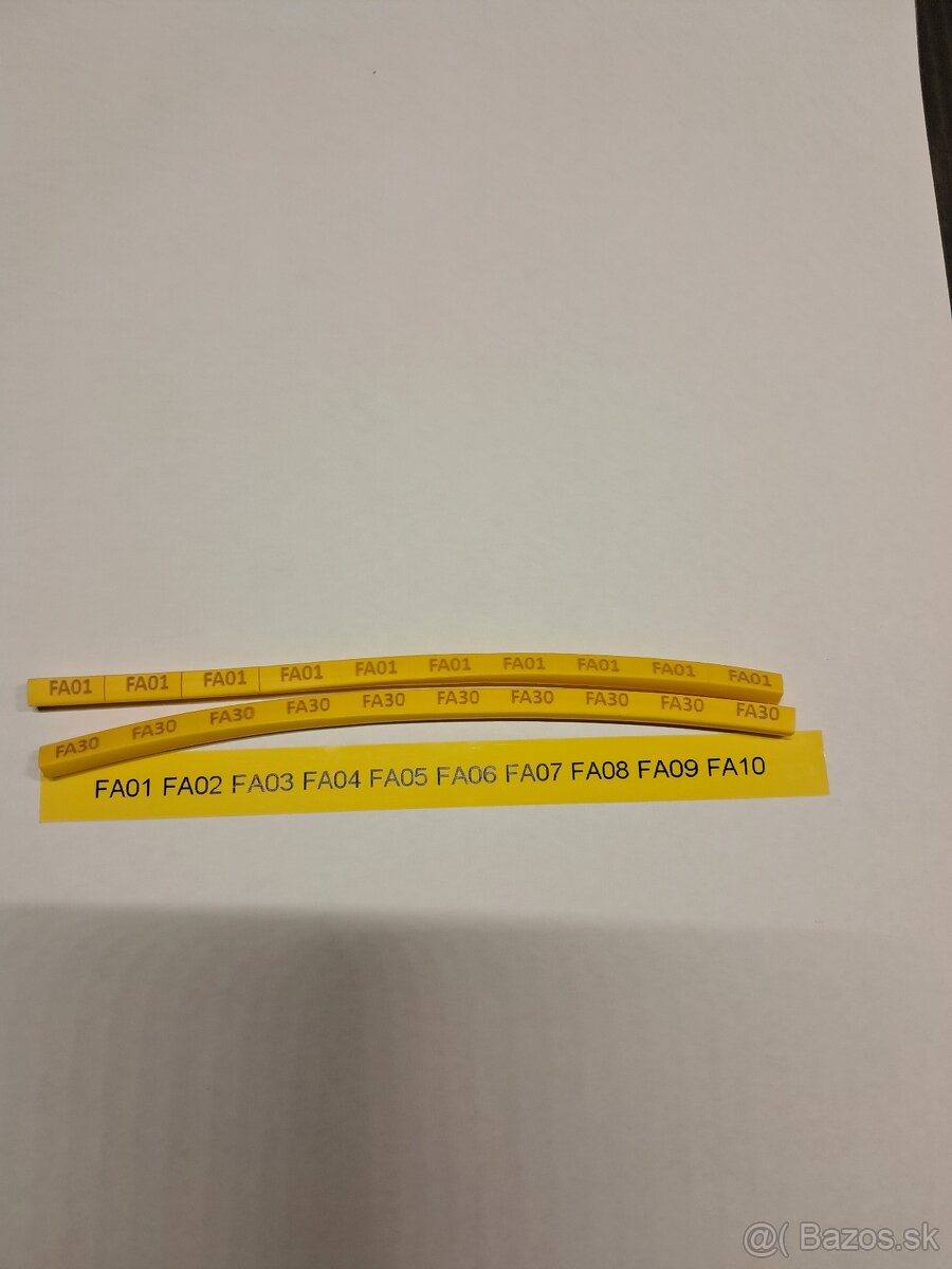 Predám popisovacie božirky s laserovým značením na jednotlivé vodiče FA1-FA30. Z každého po 10ks,spolu 300ks. Na priemer vodiča 1,5-2,5mm2