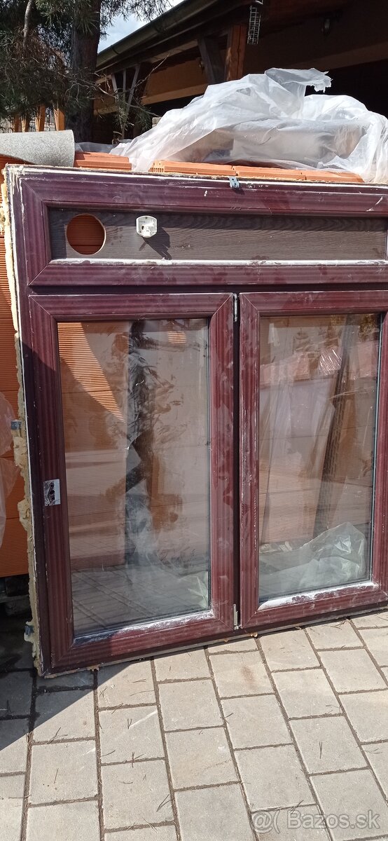 Predám použité plastové okno vo farba obojstranný mahagón.Rozmer š-140 cm,v-160 cm.Ľavá strana otvárava ,pravá fixná .V prípade potreby je možný dovoz.