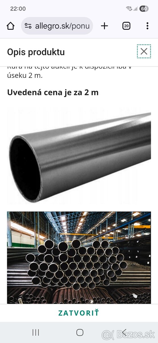 Predám železné tyčky na plotové stĺpy sú nové nepoužité, bez korózie pripadne minimalnej. Rozmer dĺžka 2metre 6cm priemer hrubka 2mm. Cena za ks, možná dohoda foto je ilustračné