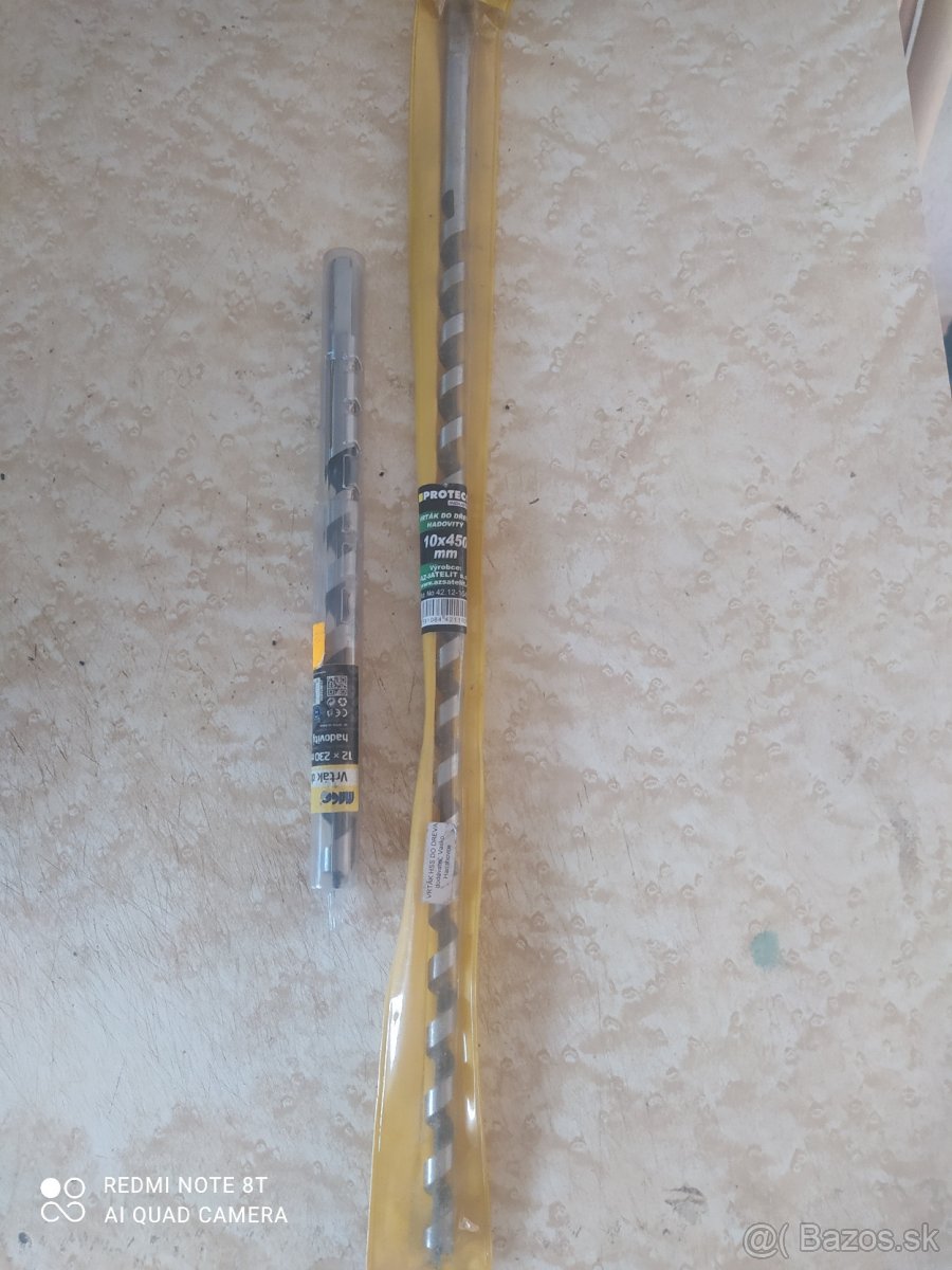 Predám úplne nový vrták do dreva 10x450-5€, Sada 3ks vrtákov do betónu (10,12,14mm x 400mm) - cena 8€. Tovar je zo zrušenej predajne. Mám viac kusov. Pošlem aj na dobierku. Polovičná cena!