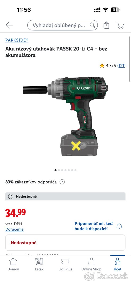 Razovy utahovak Parkside PASSK 20-Li C4 20V - [17.12. 2025]Cistonovy razovy utahovak Parkside PASSK 20-Li C4 20V. Sila 400nm. Moznost prepinat silu povolovania / utahovania. Zaruka 3 roky.