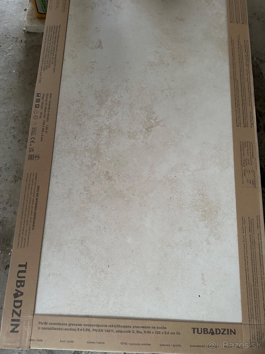 Predám veľkoplošné obkladačky- originál zabalené, nerozbalené- značka Tubadzin, farba: Torano Beige Matná, formát: 120x60 cm. Všetko jedna šarže, ratifikované, gres.