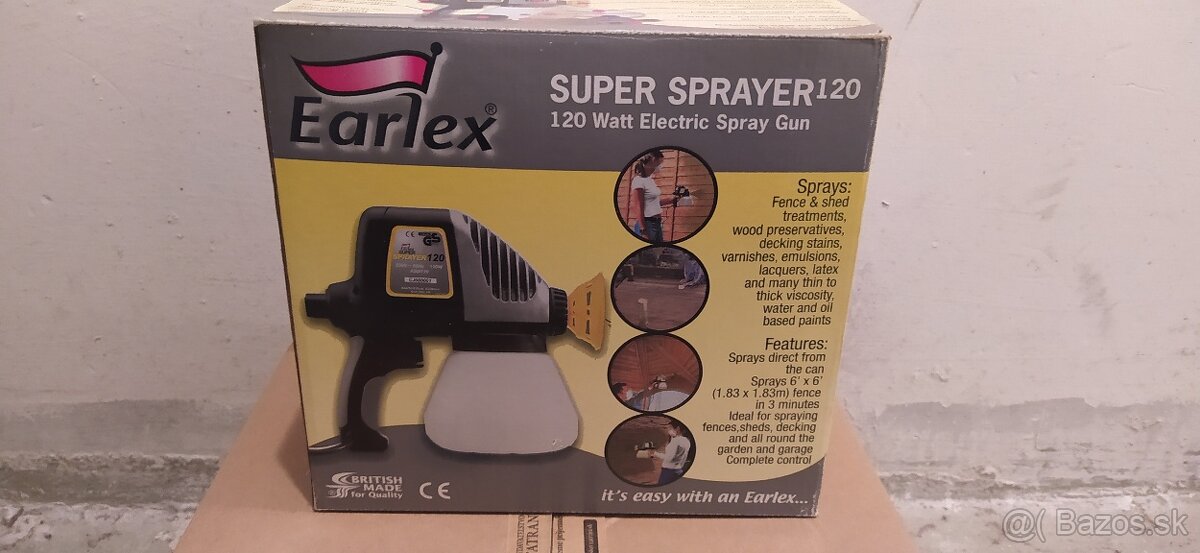 Predám elektrickú striekaciu pištoľ Earlex Supersprayer 120. Je zánovná, nevyužívaná. V balení je aj prídavná hadica, ktorú môžete ponoriť do farby vo vedre, alebo nádobe a priamo striekať steny, ploty, atď...