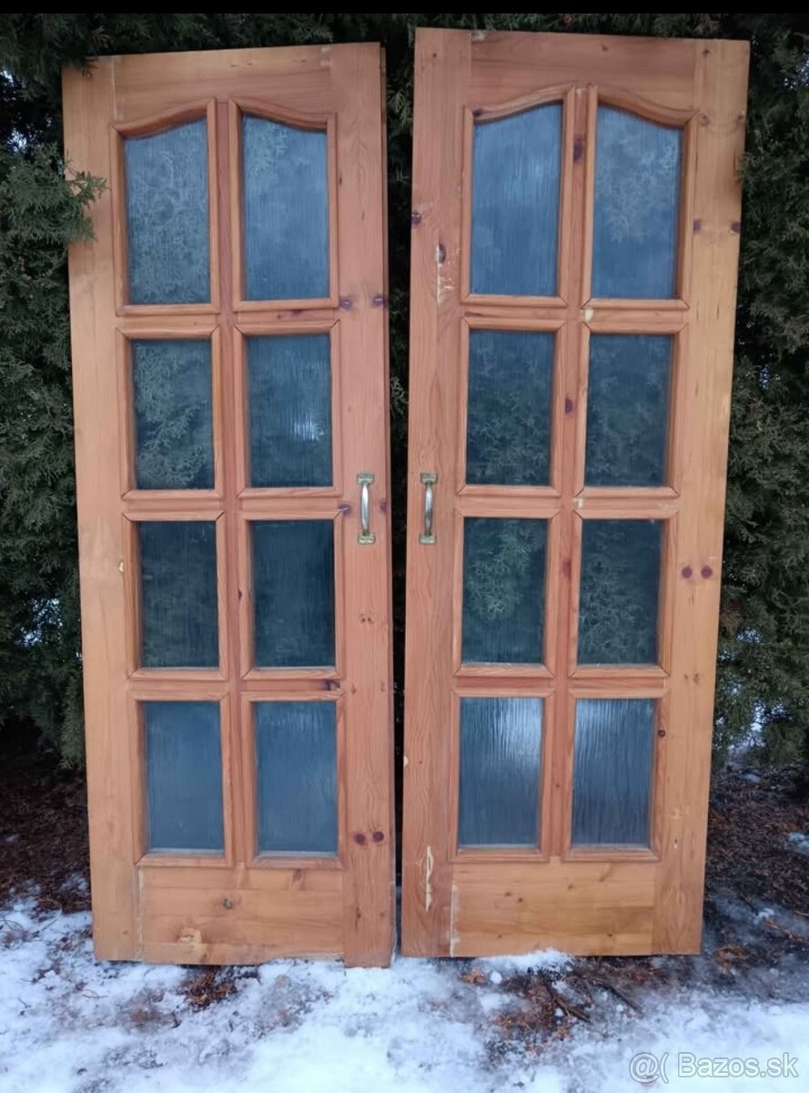 Ponukam na predaj dvere, vhodné ako posuvné. Tak ako su na foto. Drevo-smrek. Rozmery:práve- 70cm/ľavé- 70cm/vyška 201cm.