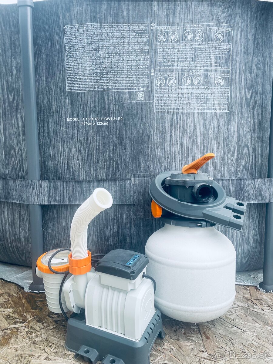 Predam bazen o rozmere 457x122cm s komplet vybavenim (cerpadlo, pieskova filtracia,schody+navyse nova kartusova filtracia, nadstavce, harice)pouzivany jednu sezonu.