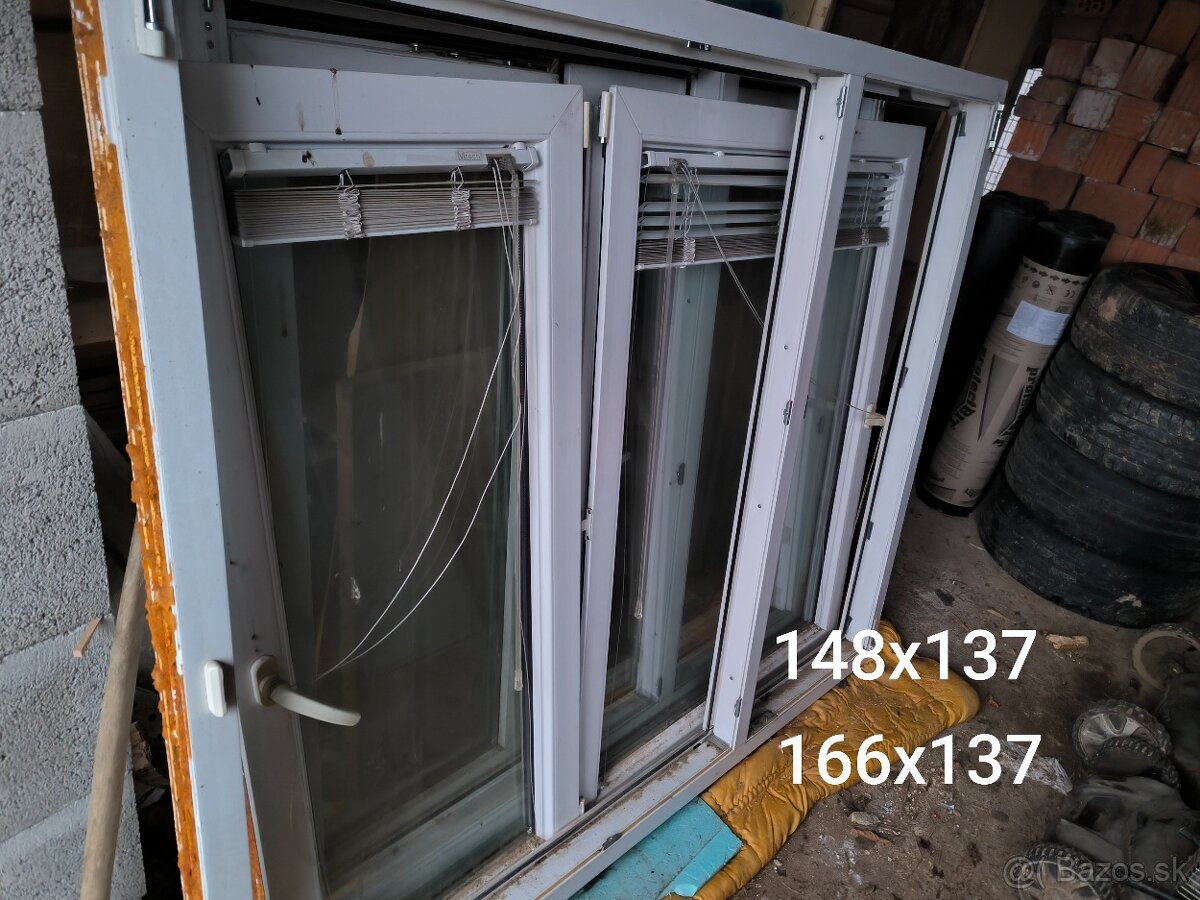 Predam 2 kusy plastovych okien, pouzite, vybrate pri prerabke domu. Rozmer 148x137 a 166x137. Iba spolu cena 80€.