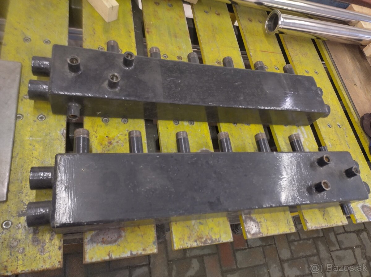 Z boku su 5/4" zavitove mufne na vzajomne prepojenie, z vrchu su 1" zavitove navarky na dopojenie kotlov, resp. cerpadiel a rozne po bokoch su umiestnene 1/2" zavitove mufne na vypustacie ventily, odvzdusnovacie ventily, manometre a teplomery.