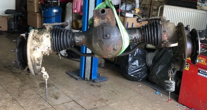 predna naprava v3s skratena na 156cm v strede navareny cap na otacanie bez uzavierky a brzd ( bol plan prerabky na kotuce) nove manzety 250€