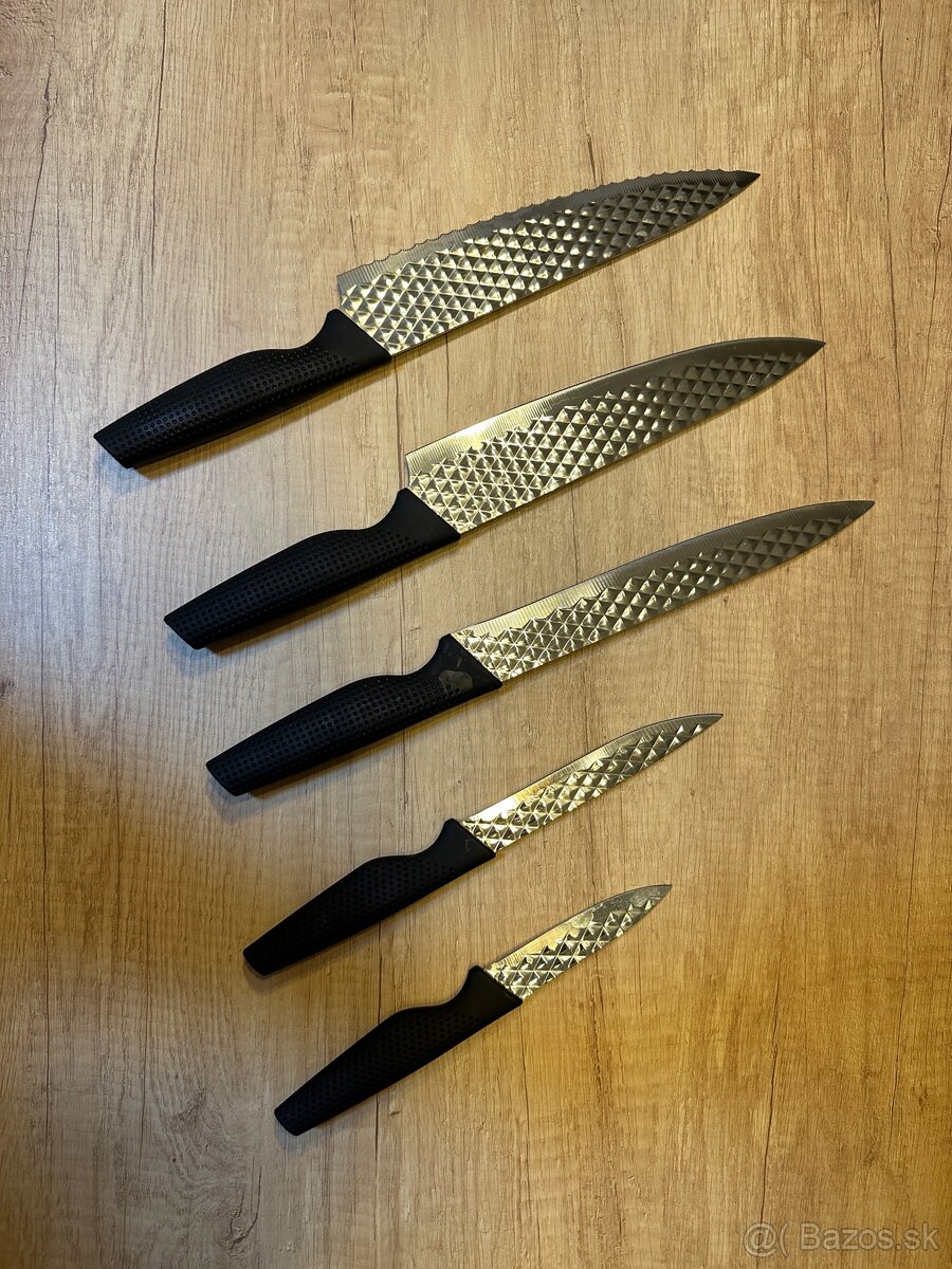 Kuchynské nože - [16.1. 2026]Predám sadu nových kuchynských nožov, 5ks + stojan za 15,-Eur