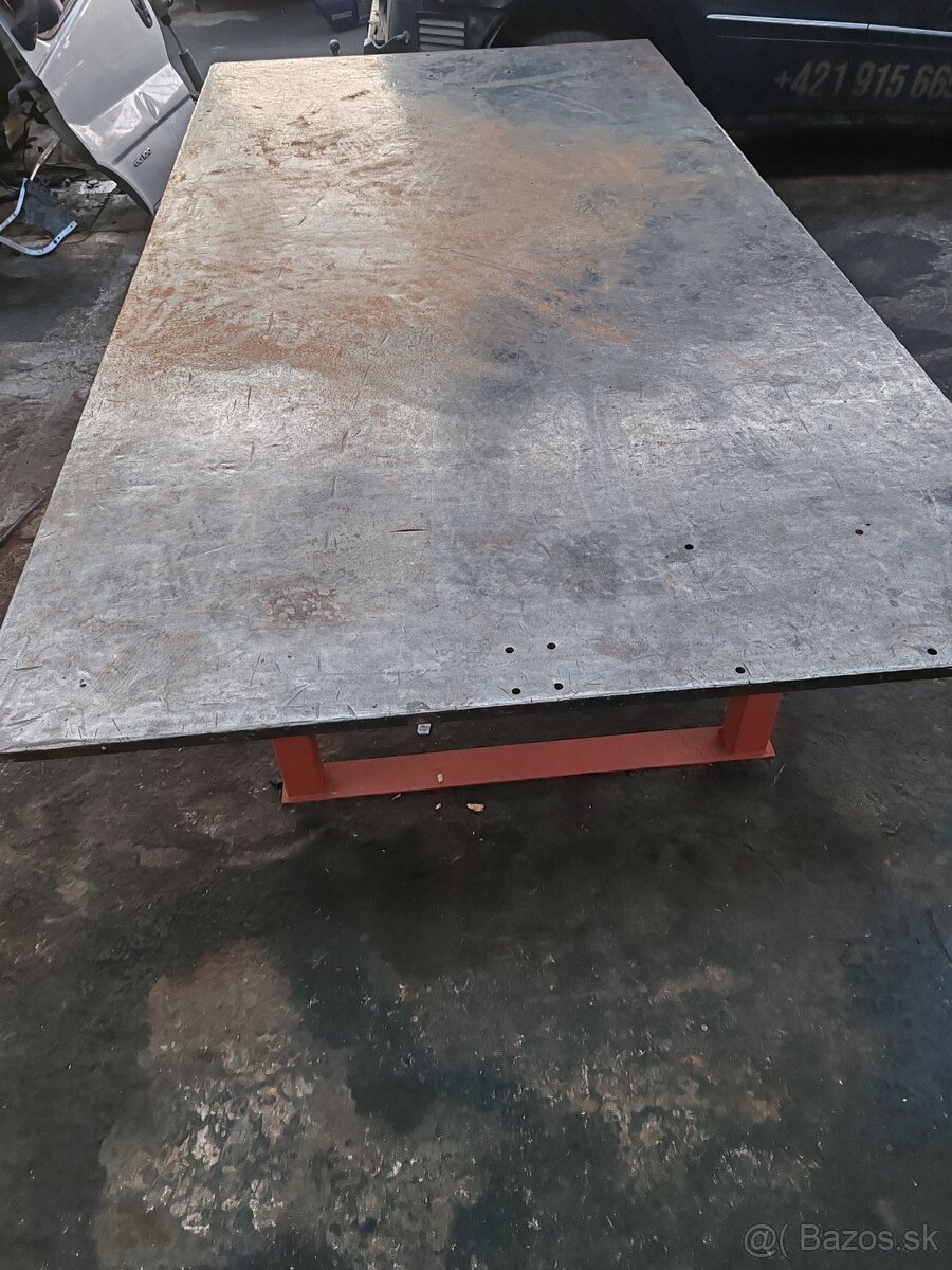 Predám masívny celokovovy pracovný stôl, stôl na zvaranie, rozmery : 3m x 1.5m, hrúbka platne 2cm, váha:960 KG, zo spozu su 4 zásuvky