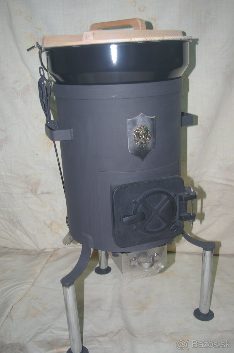 Predávam túto doma robenú kotlinu priemer 32 mm, výška aj s kotlíkom cca 80 cm , hrúbka plechu 2mm, obsah kotlíka 15 litrov, vyšamotované ohnisko, liatinový rošt aj dvierka. Komplet aj dymovod.