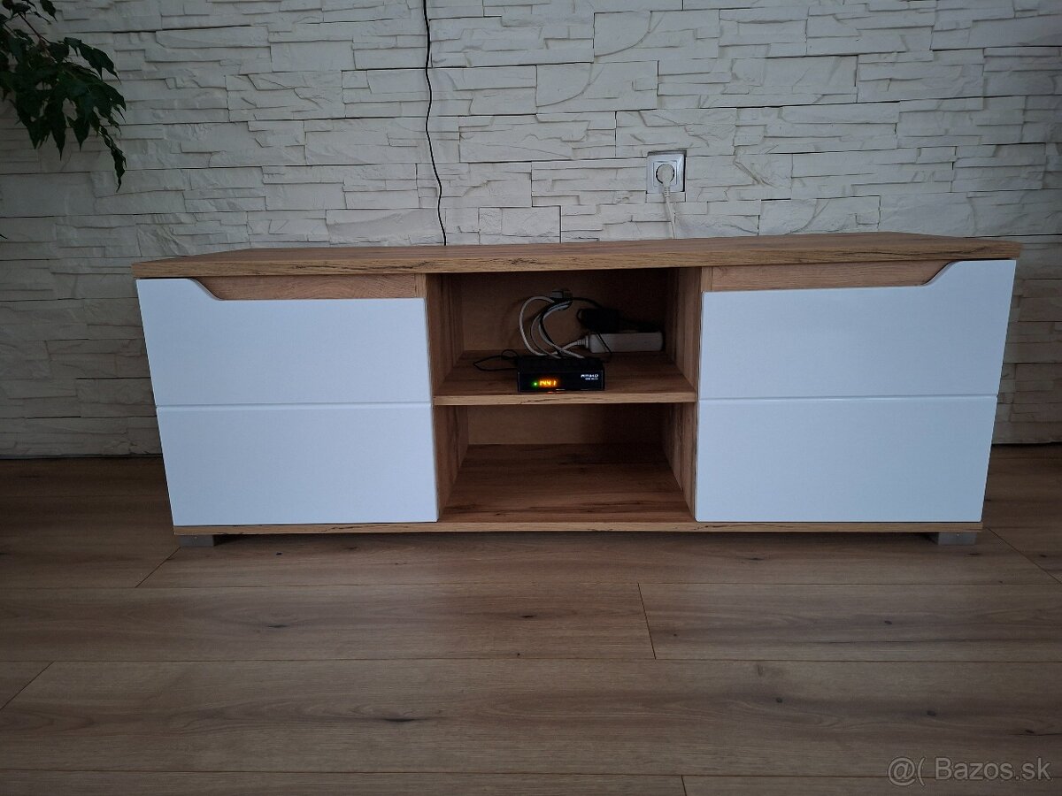 Predám novú tv skrinku,dub wotan a biela lesklá. Rozmer 133cm x 48cm.Dohoda možná