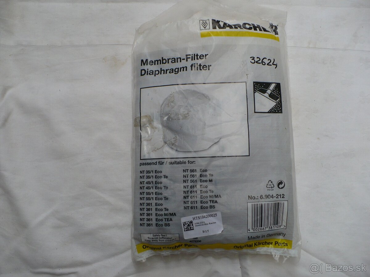 Predám orig.novú filter membránu Karcher pre vysavače(typ na foto).Umožňuje vysavanie bez sáčkov a je pratelný.PC 89€.Nie SMS