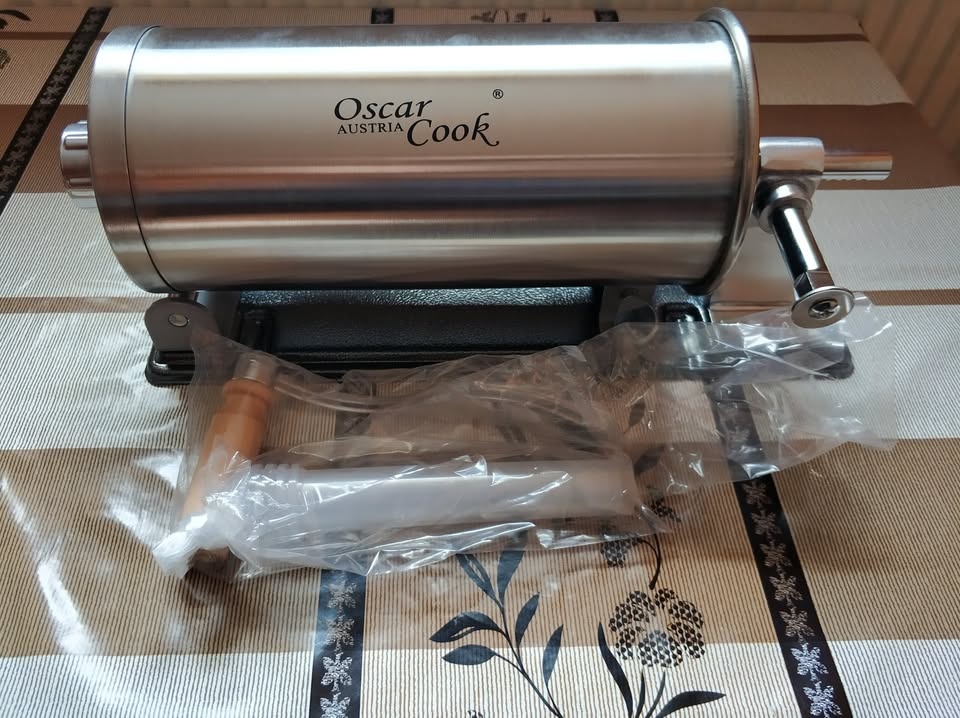 Ponúkam na predaj plničku na klobásy v objeme 4kg. Vhodná pre domáce použitie. Materiál je nerezová oceľ. Plastové nadstavce: 4ks; 17, 21, 25, 29mm.