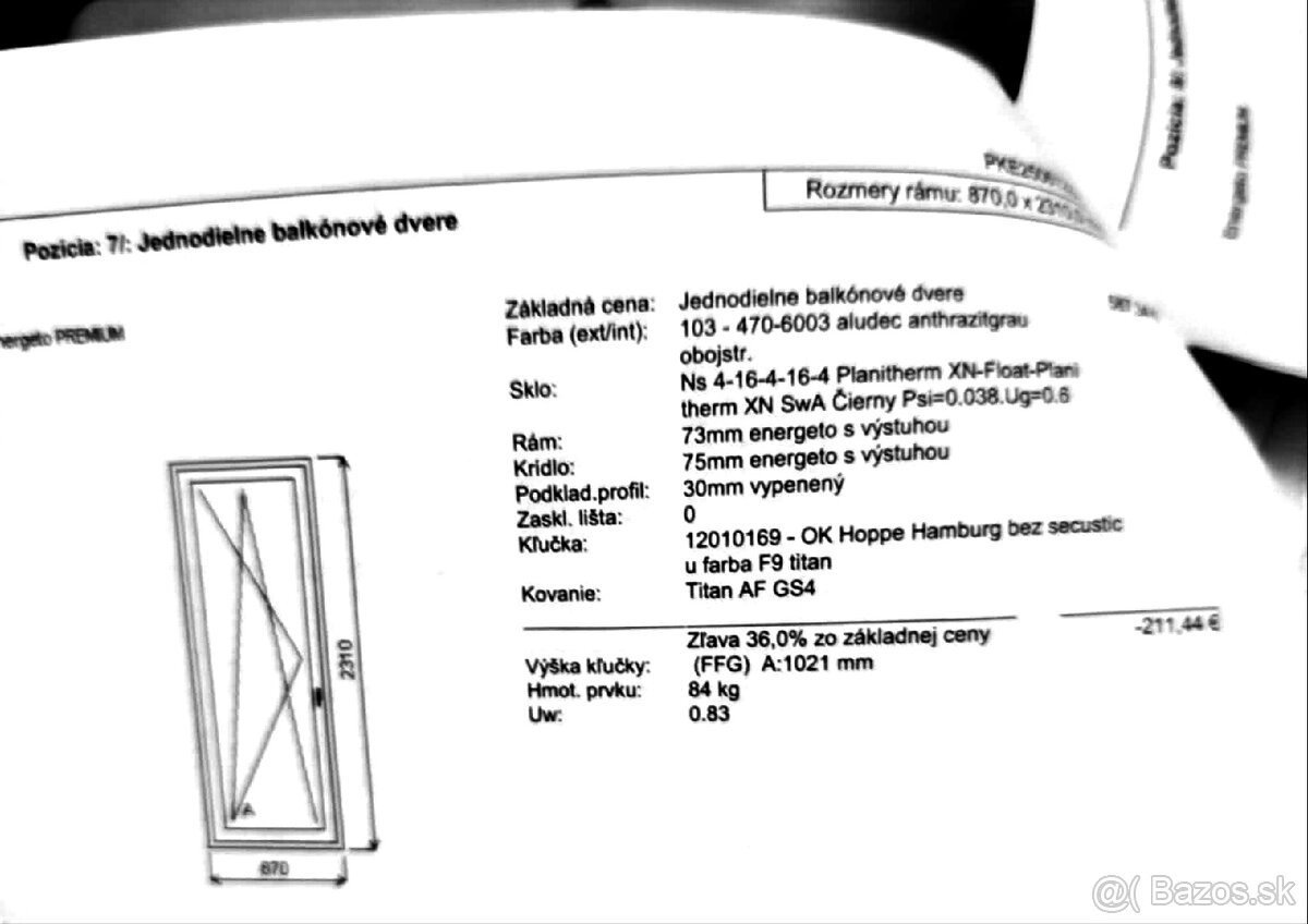 Predám jednodielne balkónové dvere Energeto PREMIUM ( Rakystav) rozmer: 870x2310mm