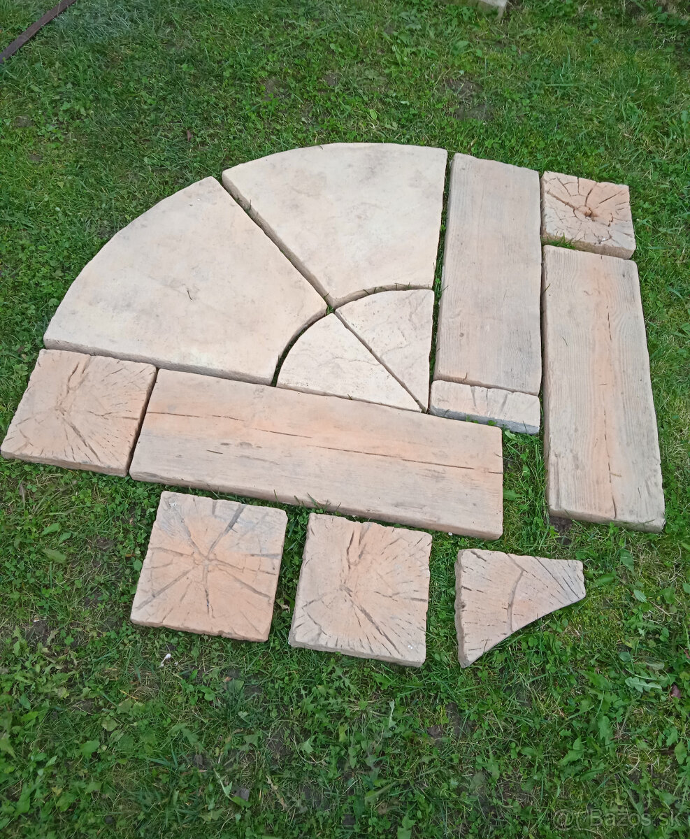 Predám nepoužitú betónovú dlažbu Stavebnica/Poloblúk, imitácia svetlé drevo. Niečo tomu chýba.Treba to doladiť resp. narezať na iné rozmery. Hrúbka dielov 4cm. Obsah: 3 ks doska/obdĺžnik 22x67cm, 4 ks kocka 22x22cm, 2 ks veľká pizza 45cm, 2 ks malá pizza 29cm a 2 ks zbytky. Platné do zmazania.