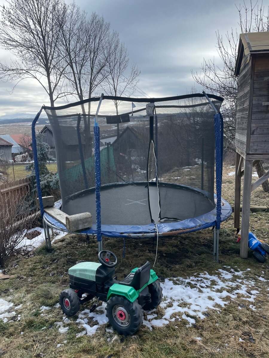 Predám trampolínu cca 3–4 m v priemere so sieťou a kovovou konštrukciou. Trampolína je používaná, ale stále plne funkčná. Sieť je celá, konštrukcia pevná, skákacia plocha nepretrhnutá. Vhodná pre deti aj dospelých.