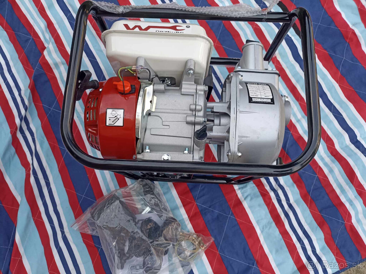 Benzinove motorove samonasavacie čerpadlo na vodu, spojky na pripojene hadic saci kôš vhodne na čerpanie čistej a špinavej vody.