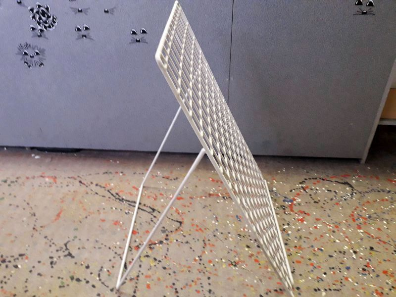 Predam velmi pevne prezentacne kovove regale Rozmer pola je 80cm x 60cm velkost oka 5x5cm..Cena 15€/pole. Drziak v:55cm,sirka 50cm Mam aj vesiaky k tomu maly biely 11 cm,cena 0,10c, modry 22 cm,cena 15c,niklovane 25 a 30 cm cena 0,20c belus.belus@zoznam.sk