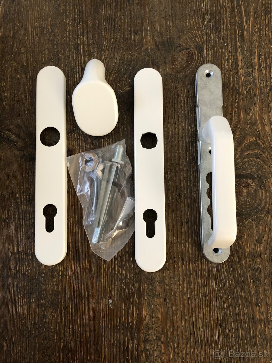 Predám nové,nepoužité bezpečnostné kovanie bielej farby /kľučka-guľa/.