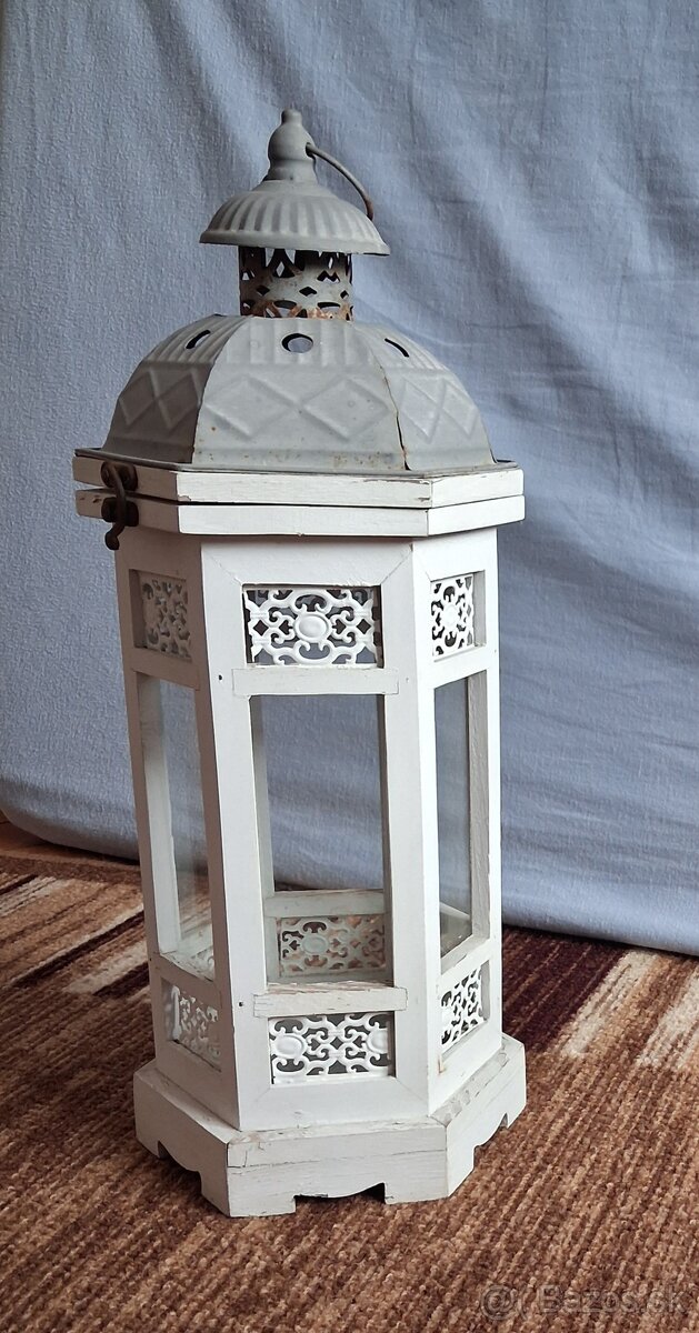 Predám drevený presklený lampáš s plechovým vrchom. Výška lampáša po špičku 46 cm. Masívny, ťažký, vhodný na osobný odber v PP.