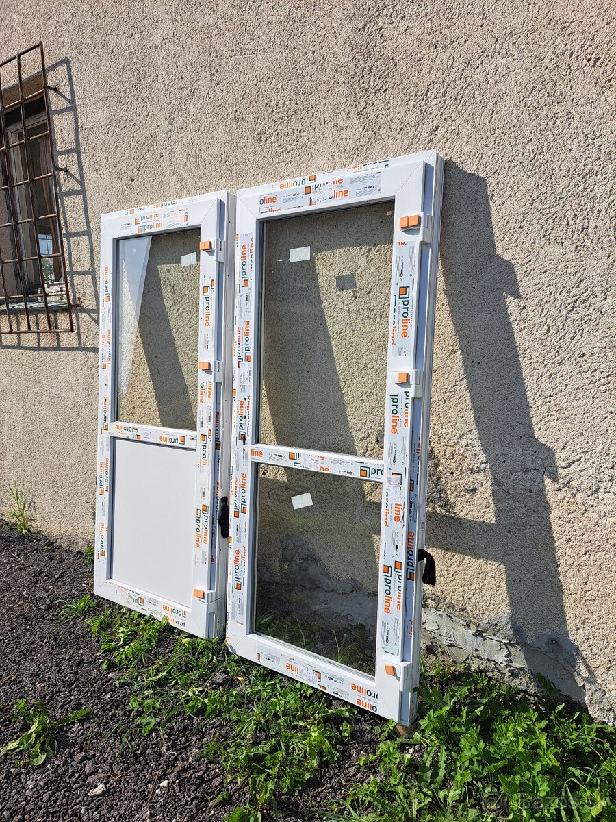 Plastové uplne nové, masívna konštrukcia s 7cm širokým profilom zárubne a hliníkovým prahom, veľké 3D nastaviteľné pánty na dverách, 5bodový zamok pravé aj ľavé prevedenie, základná farba - biela, ostatné (zlatý dub, antracit) sú príplatkové, aj viac kusov.