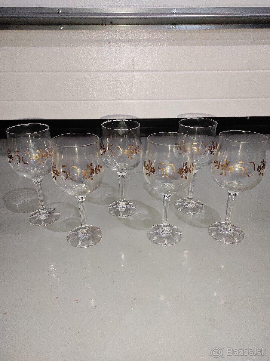 Sada vínových pohárov k 50. Narodeninám. Poháre nikdy neboli používané