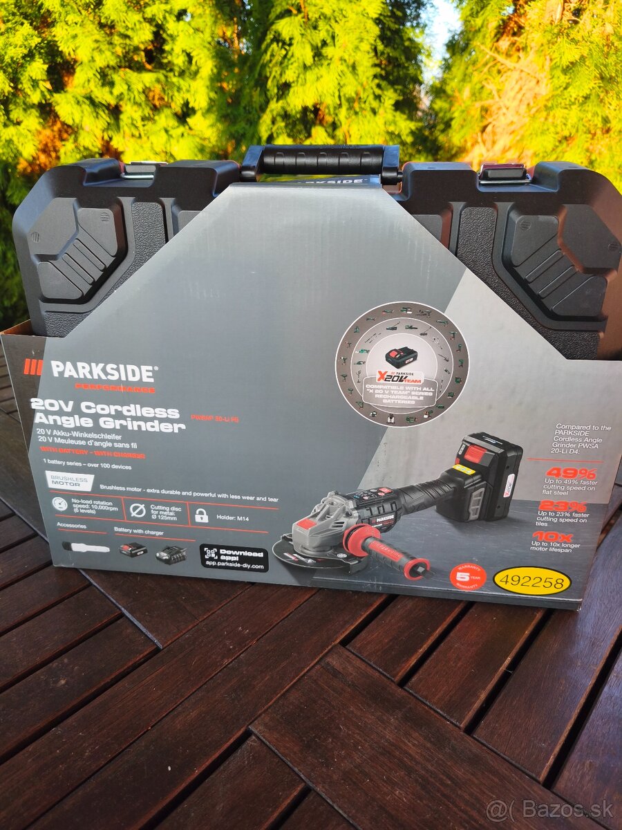 Predám čisto novú ešte zabalenú aku uhlovú brúsku Parkside Performance PWSAP 20-Li F6 s batériou a nabíjačkou.