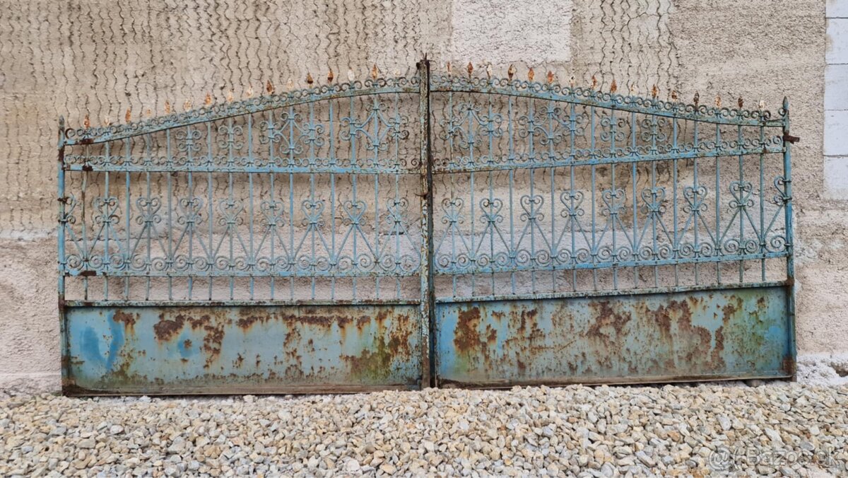 Kovaná brána - [20.2. 2026]Predám kovanú bránu dvojkrídlovú. Rozmer spolu miera: 3,70m x 200cm + 30cm výška (veľká 260cm, malá 110 cm). Celá pozinkovaná okrem kľučky