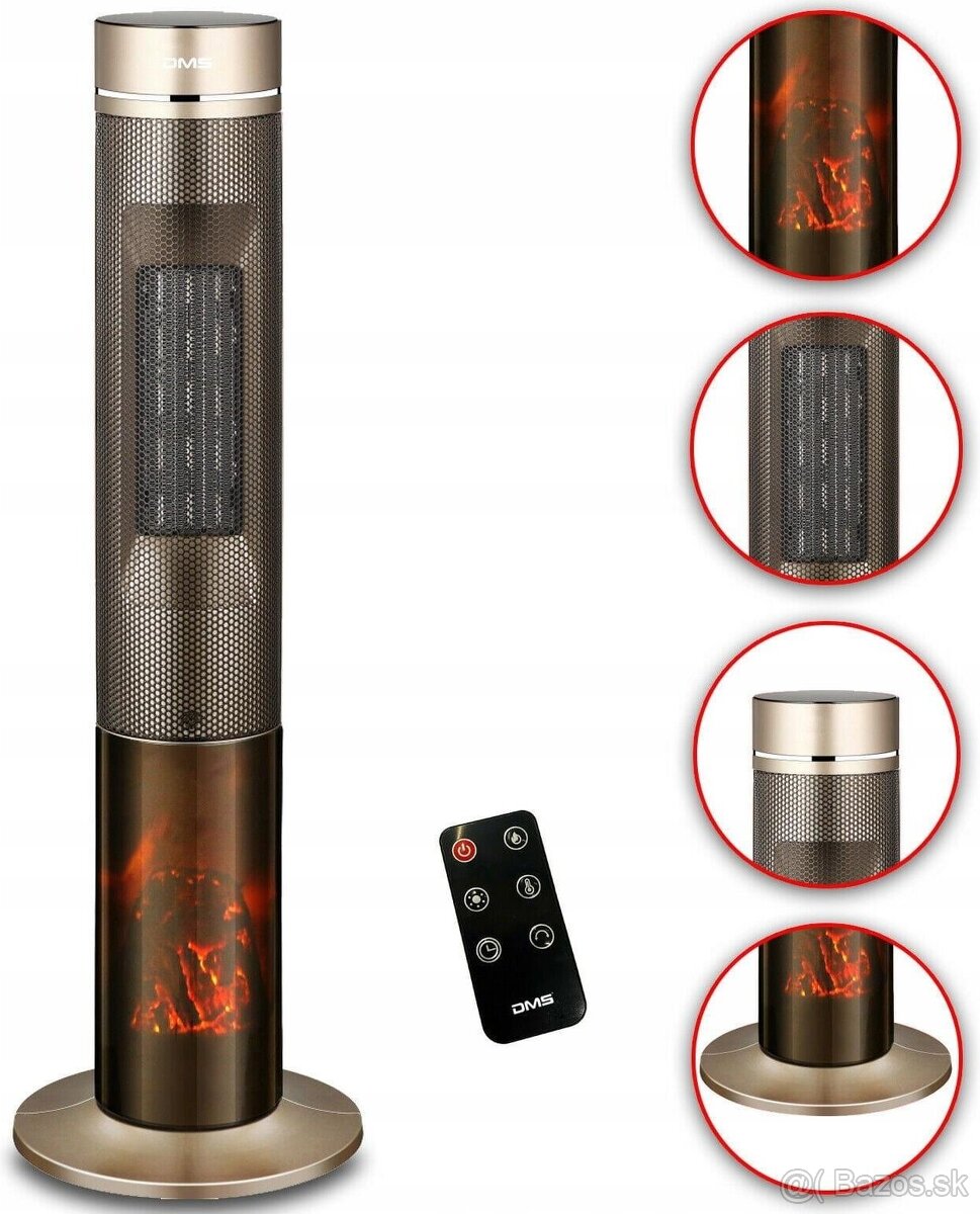 Predám vežový keramický ohrievač DMS Germany TKH-02. Je zabalený v origo krabici, nepoužitý. Kúpili sme spolu s domom. Má diaľkové ovládanie, modrý LED displej otáčaciu hlavu (dá sa vypnúť). Systém rýchleho ohrevu do niekoľko sekúnd, 3 funkcie: ventilátor / ohrievač 1000 W / ohrievač 2100 W. Má časovač 1-12hod, ochranu proti prehriatiu. Vizualizácia kozuba v spodnej časti (dá sa vypnúť). Rozmery: 85 x 18 x 18 cm, priemer základne: 31cm