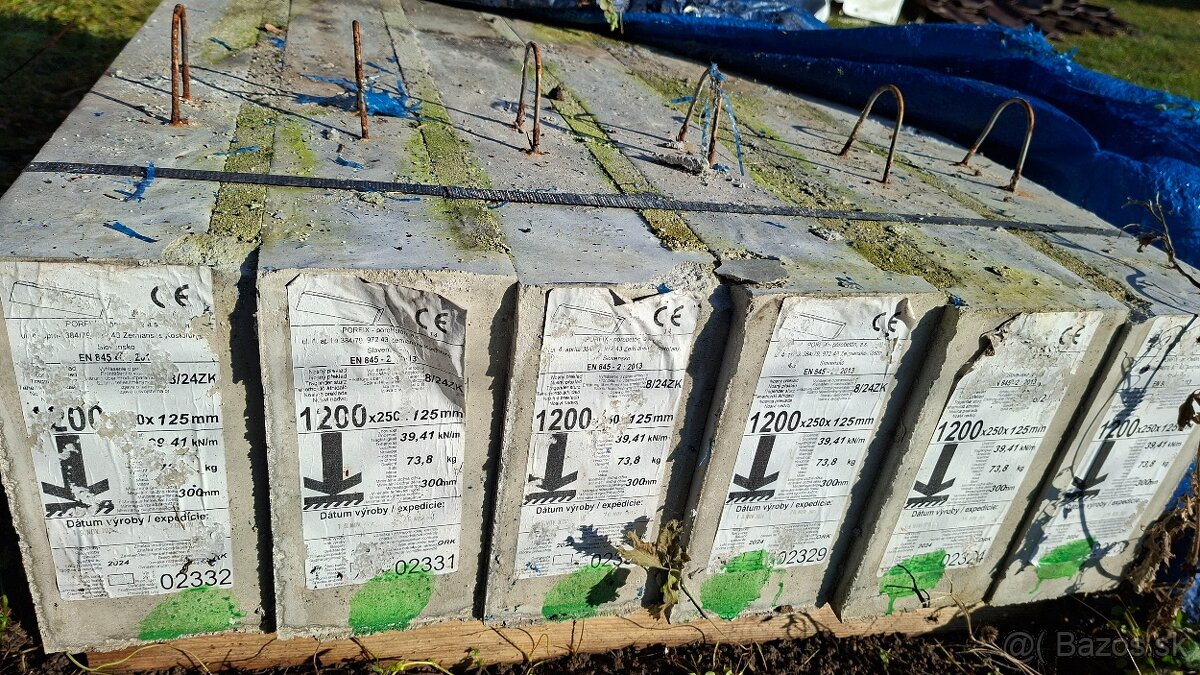 Nosný preklad PORFIX 1200x250x125 - [12.2. 2026]Predám 2ks nosných prekladov Porfix 1200x250x125mm. Nepoužité. Cenníková cena 31,90€ bez DPH. Cena 20€ za kus.
