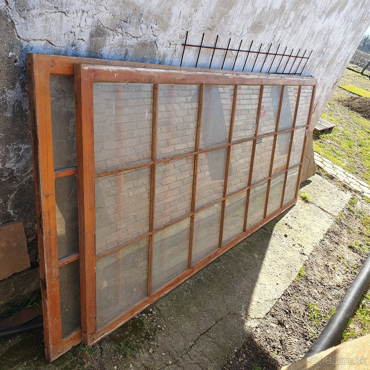 Predám dva kusy preskleného panelu (okna), rám je drevený, v poriadku, nie je hnilý. Pravdepodobne z nejakej starej verandy. Jeden panel má rozmer 330 x 130cm a druhý 300 x 130 cm. Rozmer jednej sklenenej výplne 40 x 38cm. Cena za oba kusy 30€